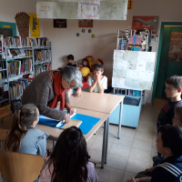 Des écoliers vivent et construisent avec le climat, à Saint-Maurice-NavacellesA l’aide d’une maquette, le CAUE 34 leur a expliqué quels sont les principes de l’architecture bioclimatique. |