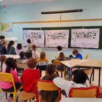 Imaginer les cours d’écoles de demainLa dynamique des ateliers « Cour Vivante ! » se poursuit avec la deuxième phase d’interventions dans les écoles de Mireval, Aspiran et Aniane. Après l’état des lieux réalisé en début d’année lors du premier atelier, place désormais à la réflexion collective sur les futurs aménagements ! Les ateliers ont commencé avec les élèves en élémentaire qui ont travaillé en petits groupes pour imaginer leur cour idéale. À l’aide d’un jeu de cartes illustrées, présentant différentes ambiances et usages possibles, les élèves ont choisi plusieurs images et les ont positionnées sur le plan de leur cour. Cette spatialisation leur a permis de réfléchir aux zones de jeux, de calme, aux types de revêtements de sol et à la place de la nature et du végétal. |