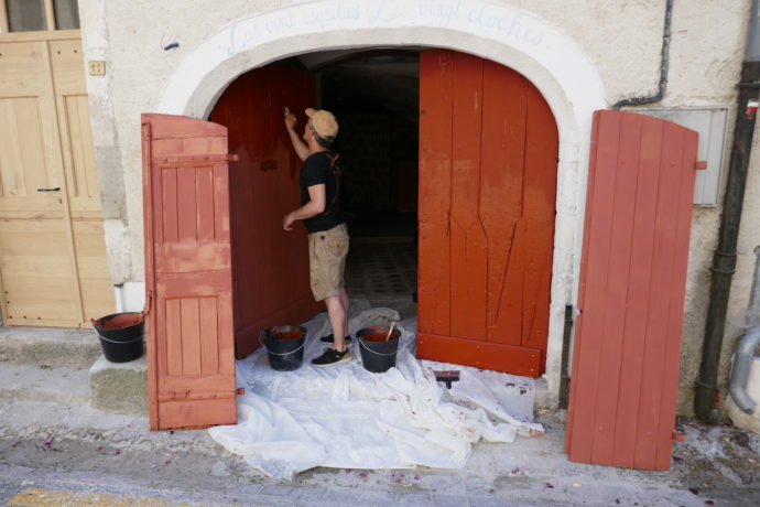 Dimanche 30 juin 2019, dès 8 h du matin, l’équipe du CAUE 34 organisait avec les habitants de la commune, un grand chantier participatif : portes, portails et volets en bois de plusieurs maisons ont été peints avec des ocres de couleurs jaune, rouge, grise… et même bleue !