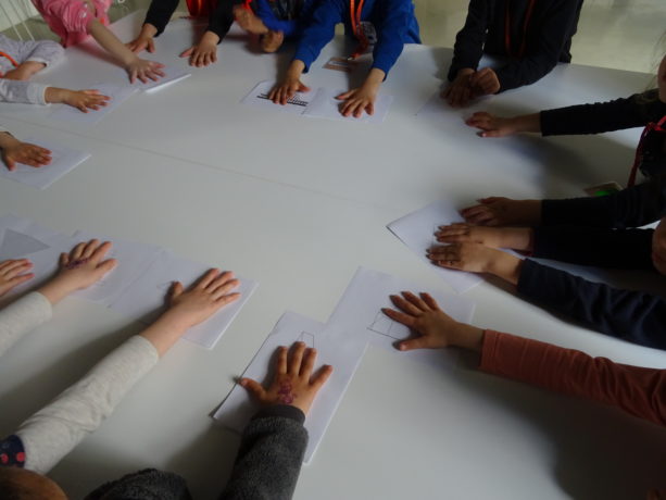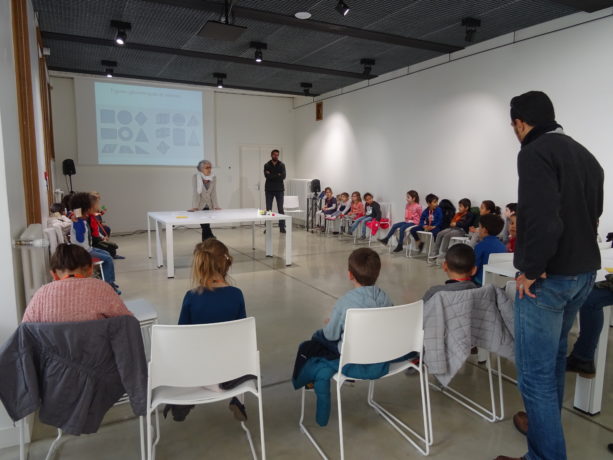 Lundi 18 mars 2019, à 14 h 30 – Vingt-cinq élèves de grande section de l’école Alphonse Daudet à Montpellier arrivent au CAUE avec leur maitresse, Marie-Laure, et trois accompagnateurs pour se familiariser avec les formes géométriques et les volumes : carré, rectangle, cercle, triangle, cube, « pavé », sphère, cylindre, cône, pyramide, hélice…