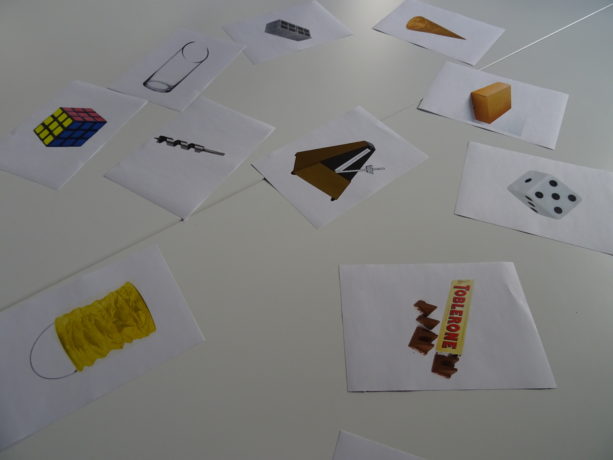 Ensuite on associe formes géométriques, volumes, objets du quotidien et architectures :
