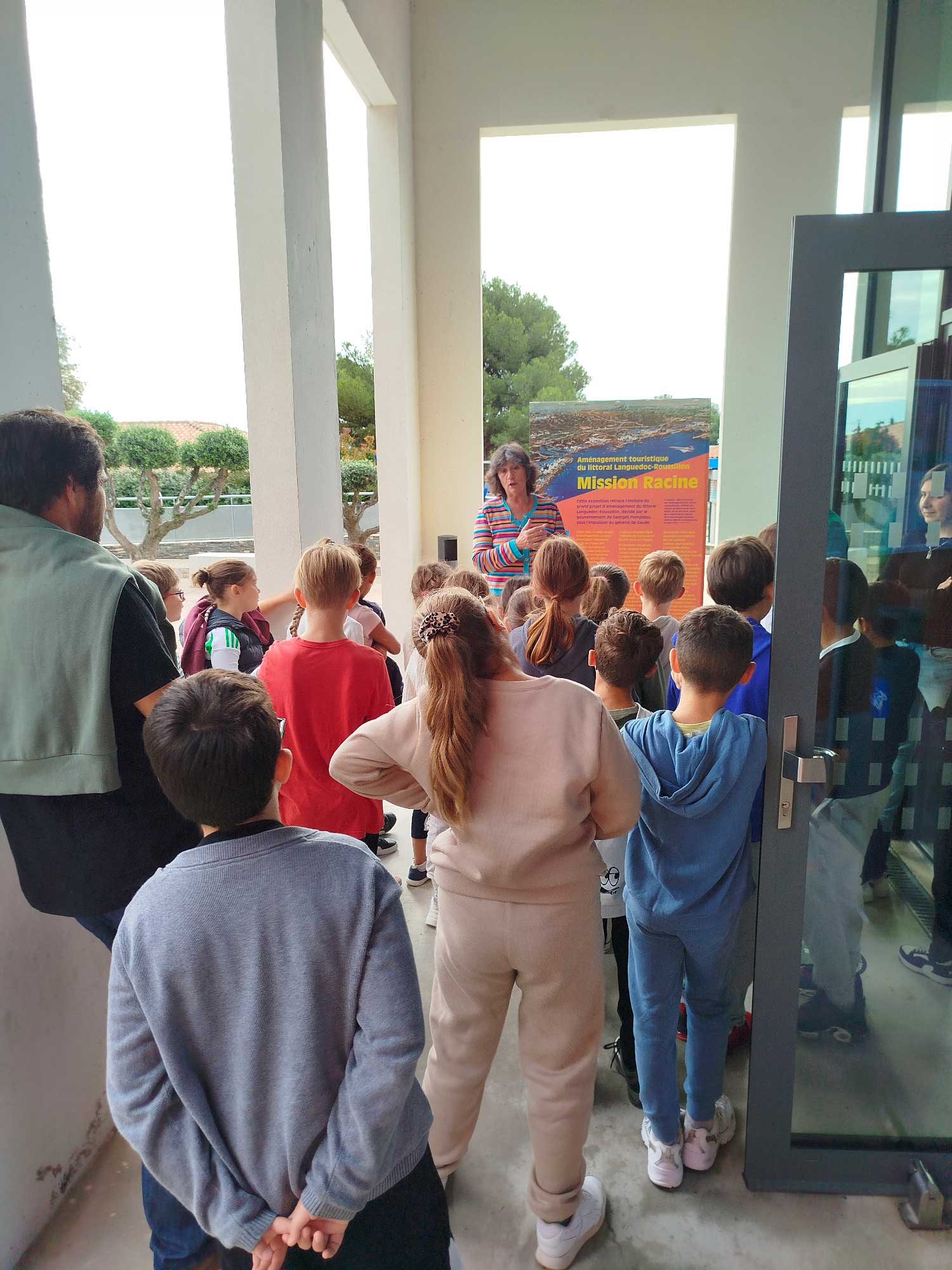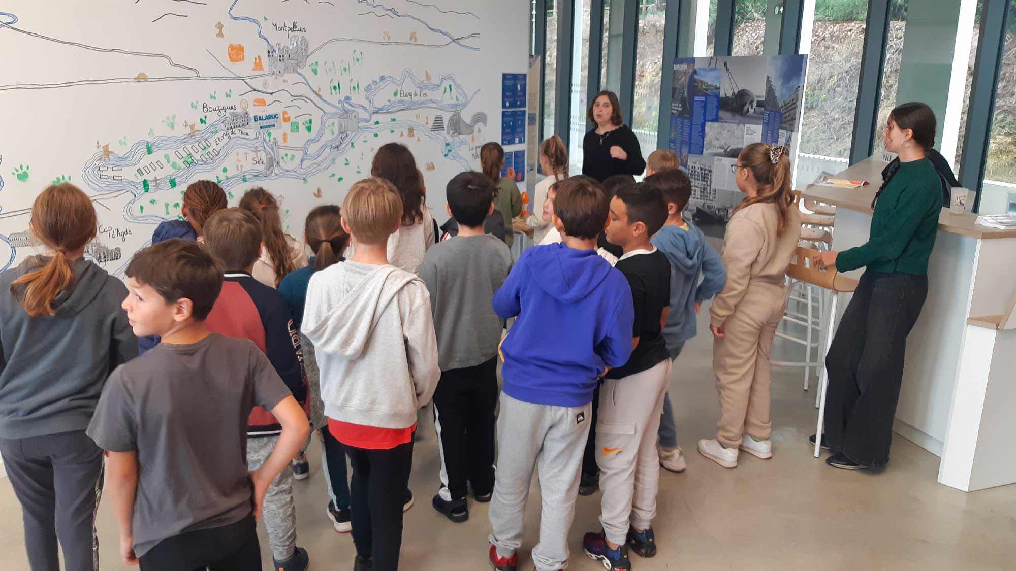 Le mardi 8 octobre, deux classes des écoles primaires Lou Planas et Le Petit Prince (élèves de CM1 et CM2) ont assisté à une visite commentée de la double exposition. Les commentaires ont été assurés par Vitalie ARCQ, chargée du développement des publics au Service Culture et festivités de la ville de Balaruc-les-Bains et par Anne VERDIER et Anne-Marie LLANTA, architectes au CAUE 34. Les carnets de jeux sur la Mission Racine, réalisés par le CAUE, ont permis aux élèves de tester de façon ludique les connaissances acquises à cette occasion.