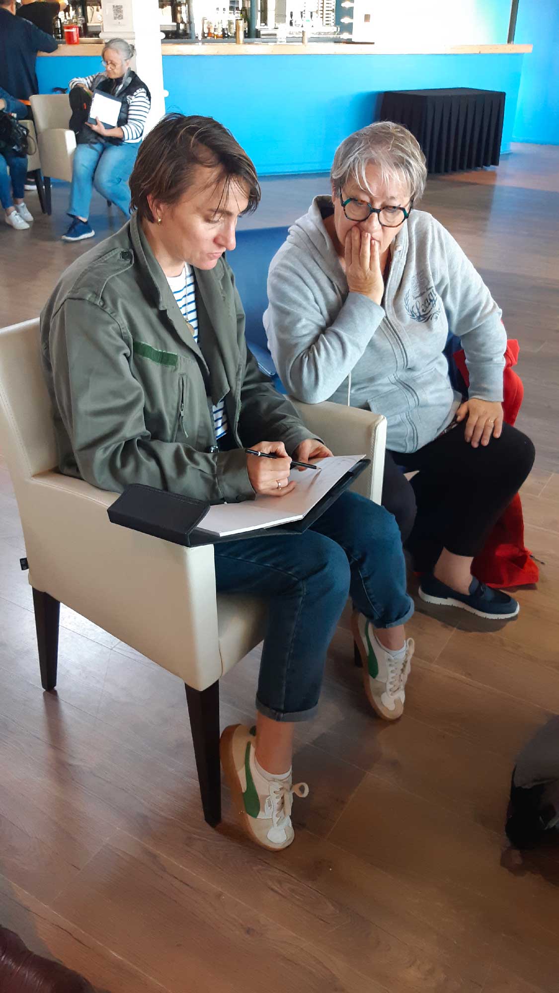 Cette double exposition a été également présentée par Vitalie ARCQ à des personnes du CCAS (le 2 octobre), qui ont pu réaliser des tampons et les apposer sur la fresque du littoral conçue par le CAUE, ainsi qu’au club “Bal’ados” le 16 octobre et à une classe de CM2 (le 18 octobre).