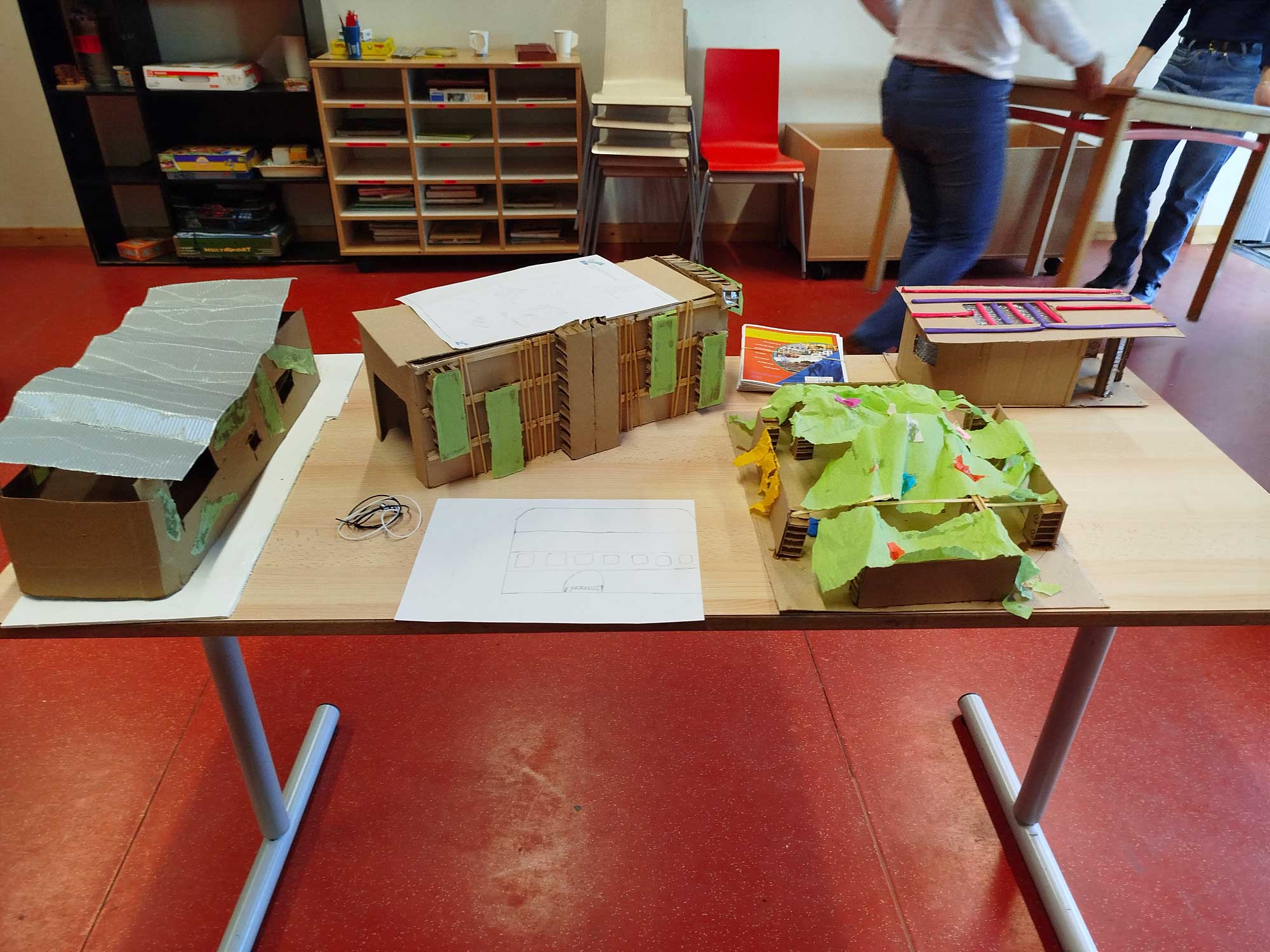 Les quatre maquettes réalisées ont permis de travailler sur les notions d’échelle, d’usage, de principes constructifs, d’architecture bioclimatique…