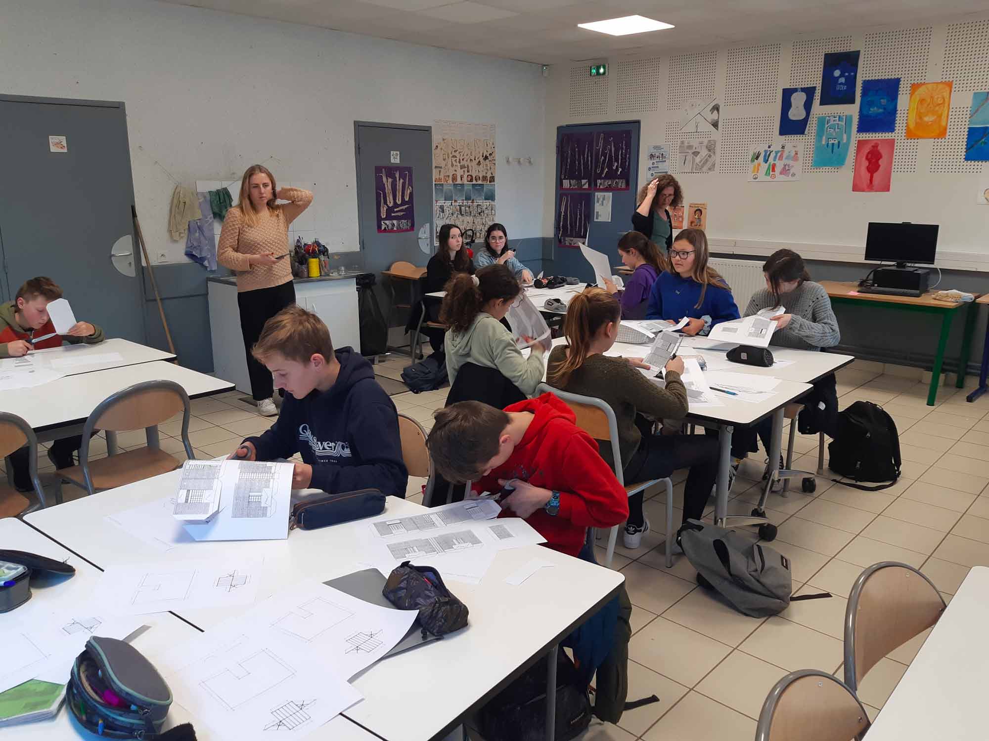 Les deux prochaines séances animées par le CAUE, auront lieu les mardis 7 et 14 février, et permettront de présenter l’environnement du collège, l’architecture du bâtiment initial (une école primaire de la République) et celle de son extension (XXIe s.). Après une analyse individuelle et sensible de leur lieu d’enseignement, les élèves auront à réfléchir sur son évolution à venir, liée aux nouveaux besoins de l’établissement.