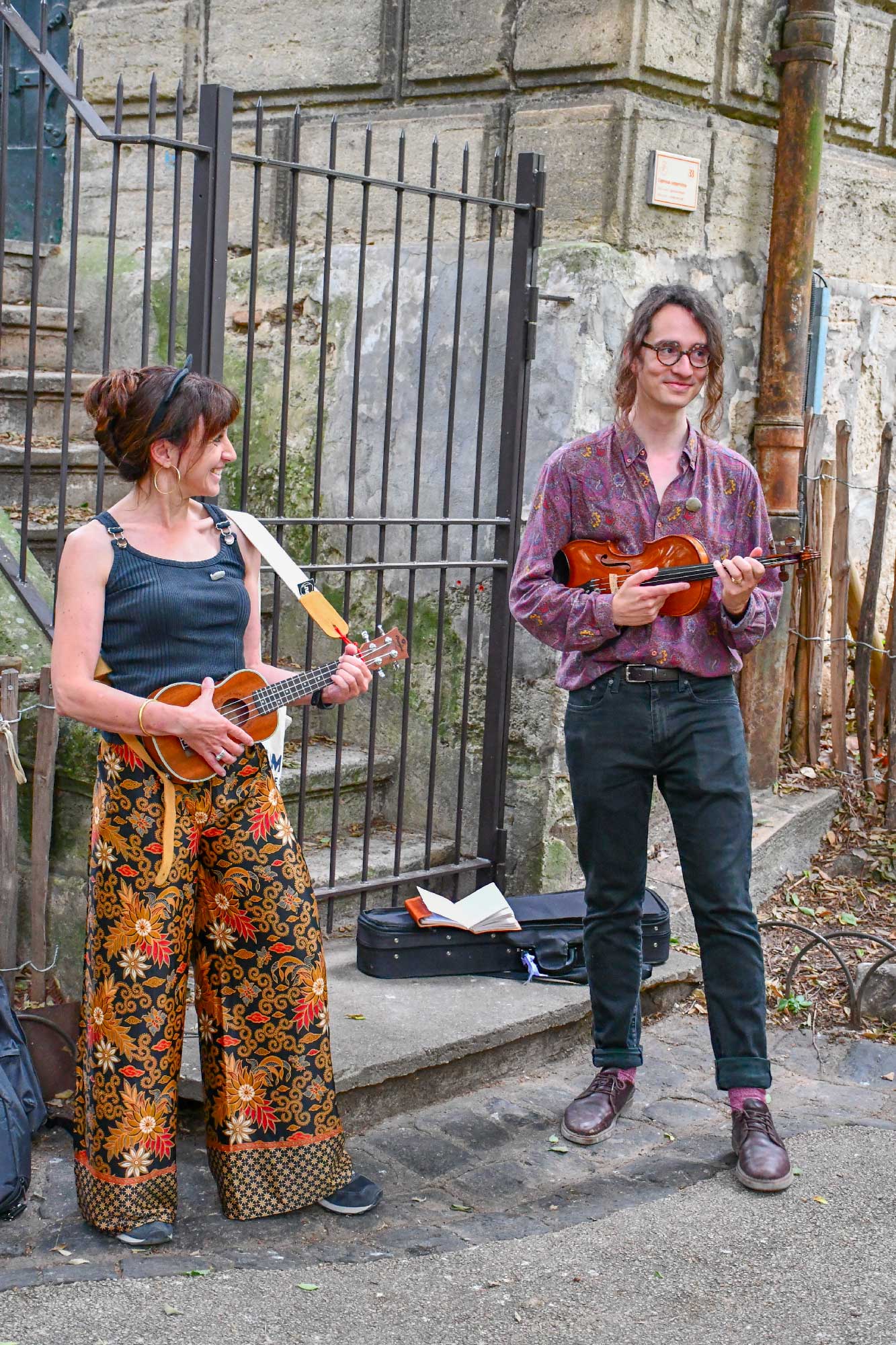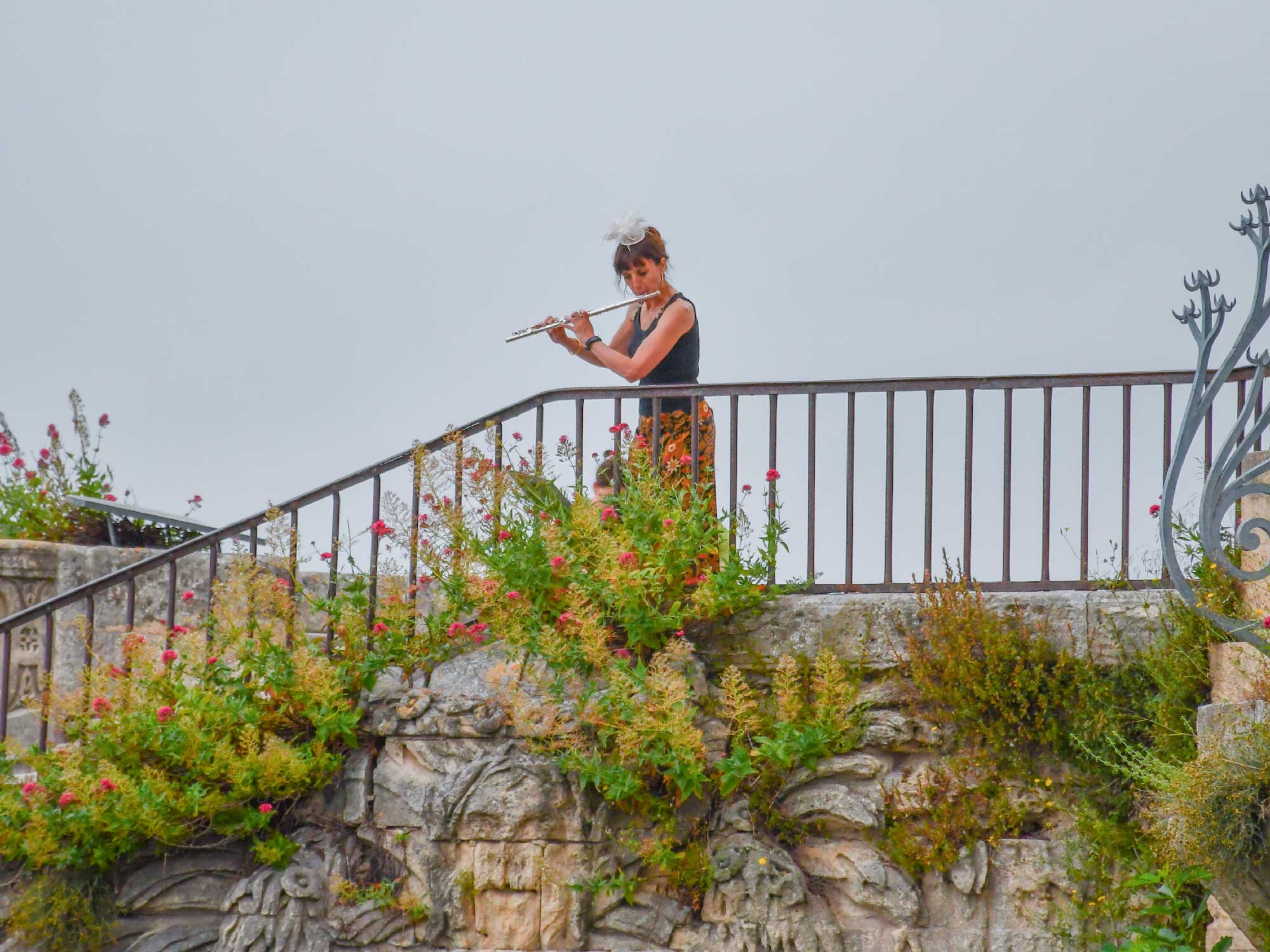 Sous les “Arceaux”, le groupe découvre la végétation spontanée qui pousse entre les pierres de l’ouvrage hydraulique : pariétaires, fausse-valériane, menthe sauvage, phagnalon sordide et même… des figuiers ! Mais une musique lointaine ramène le groupe à sa quête… Il reconnaît immédiatement le célèbre thème de Pierre et le loup, interprété au violon (interprété par Jérémy). Sous la voûte elliptique, le son se trouve amplifié naturellement ! L’Oiseau et Pierre célèbrent leurs retrouvailles à deux voix, à la flûte et au violon, pour le plus grand plaisir du public.