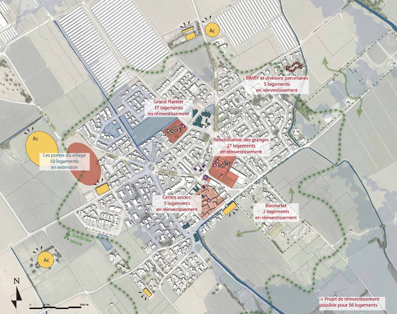 Avant de se pencher sur de nouveaux secteurs d’extensions, une stratégie foncière est à élaborer pour l’horizon 2033 (PLH), prenant en compte les “dents creuses” et les parcelles mutables. La cohérence du fonctionnement du village à long terme ne peut être garantie que par une étude de définition urbaine thématique et sectorielle.
