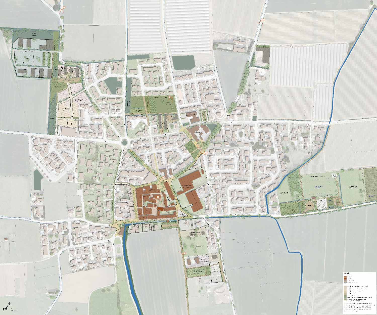 Principe d’aménagement du “nouveau centre”. Crédit : Eskis
