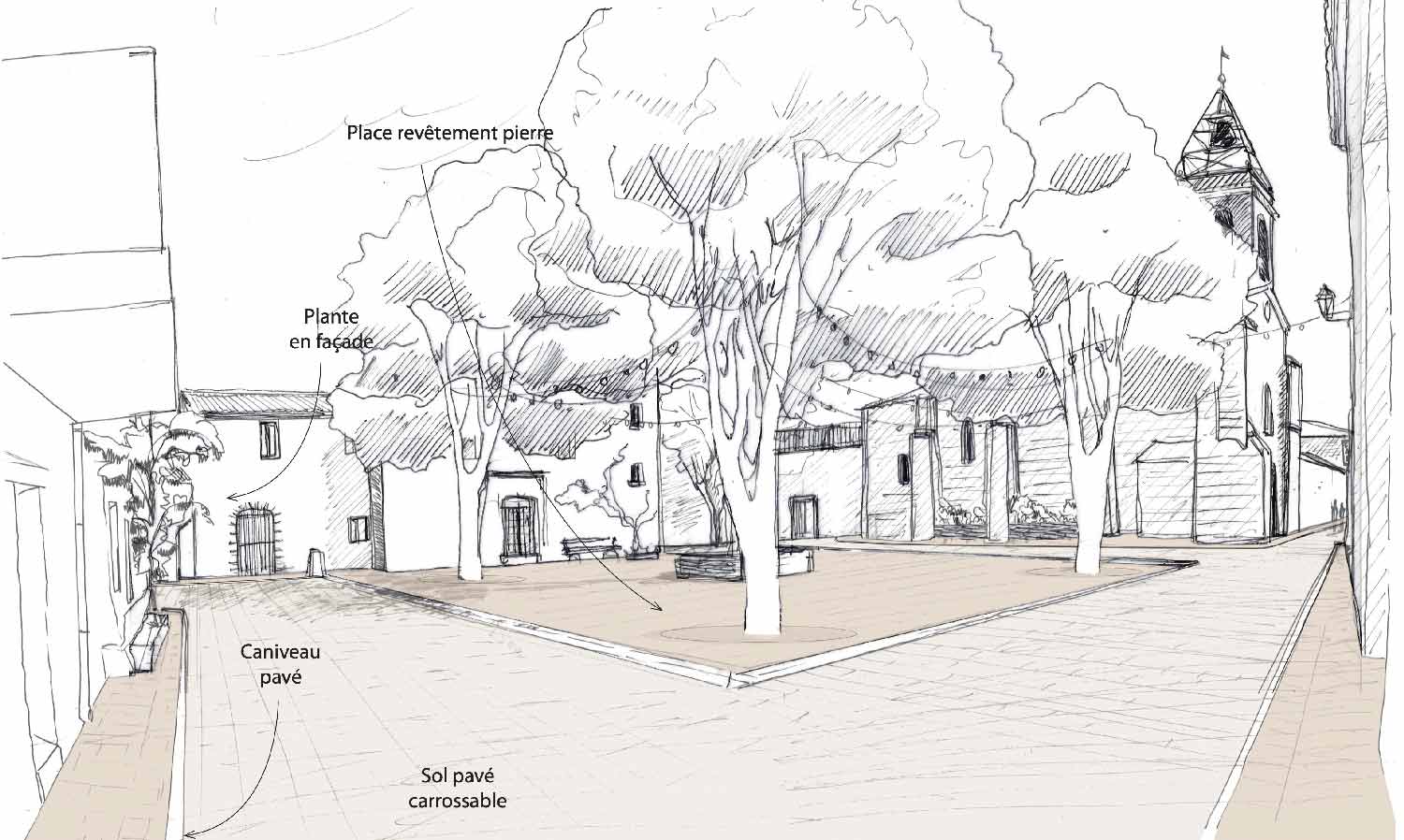 Principe d’aménagement de la place du Château. Crédit : Eskis