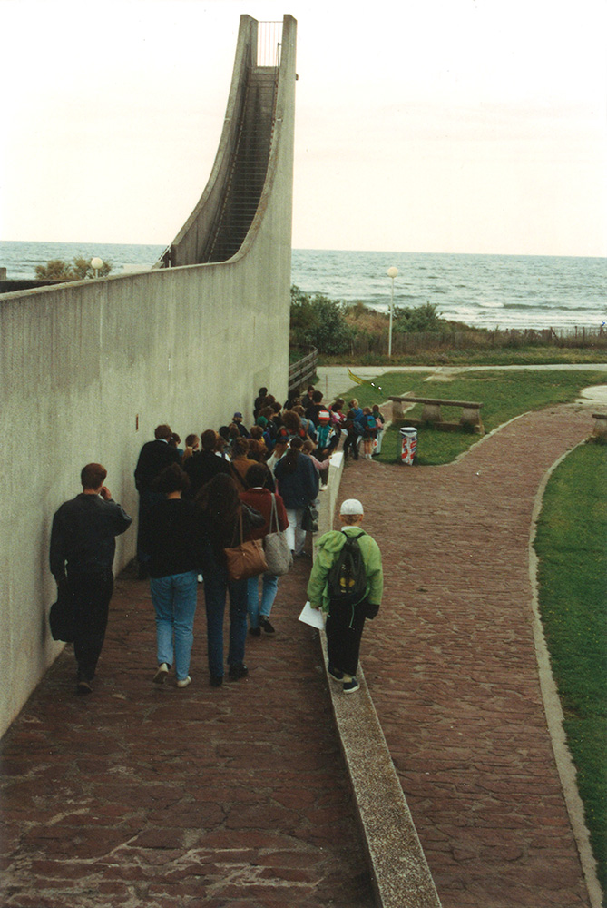 En 1992, le CAUE 34 animait un atelier de sensibilisation à l’urbanisme et à l’architecture de la Grande-Motte auprès d’élèves et lycéens, en présence de Jean Balladur, architecte.