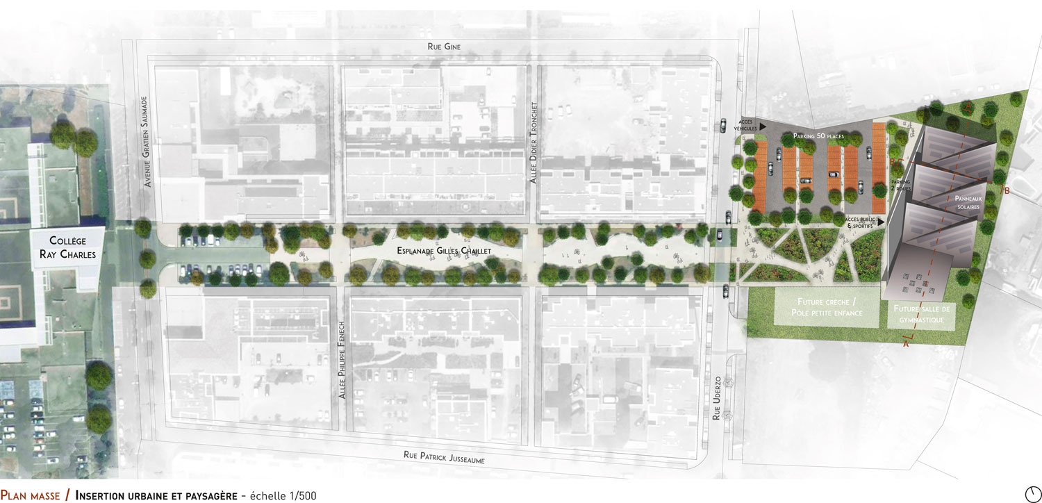 « Notre proposition s’attache ainsi à répondre à l’ensemble des enjeux du programme en imaginant une architecture sobre et intemporelle capable, sans chercher une quelconque rivalité, à accompagner ce nouveau quartier dans un souci permanent de confort et d’économie. »