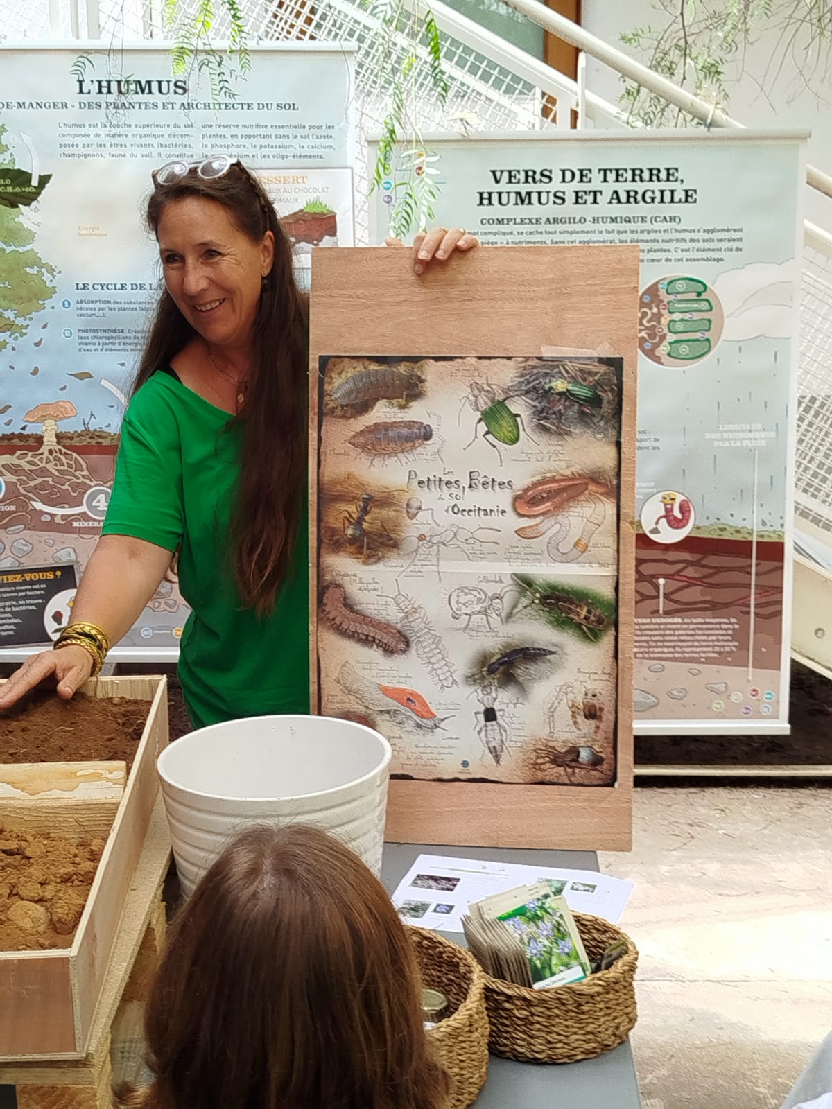 Une exposition prêtée par l’APIEU sur les sols vivants a permis de développer, entre autres sujets, l’importance du rôle des vers de terre pour la vie des sols.