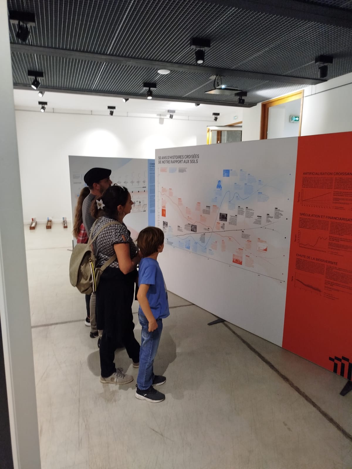 En parallèle, 58 visiteurs sont venus découvrir ce jour-là l’exposition “Terre, terrain, territoire”, qui aborde la question des sols et de leurs usages dans la fabrique de la ville.