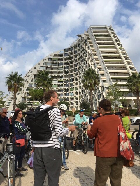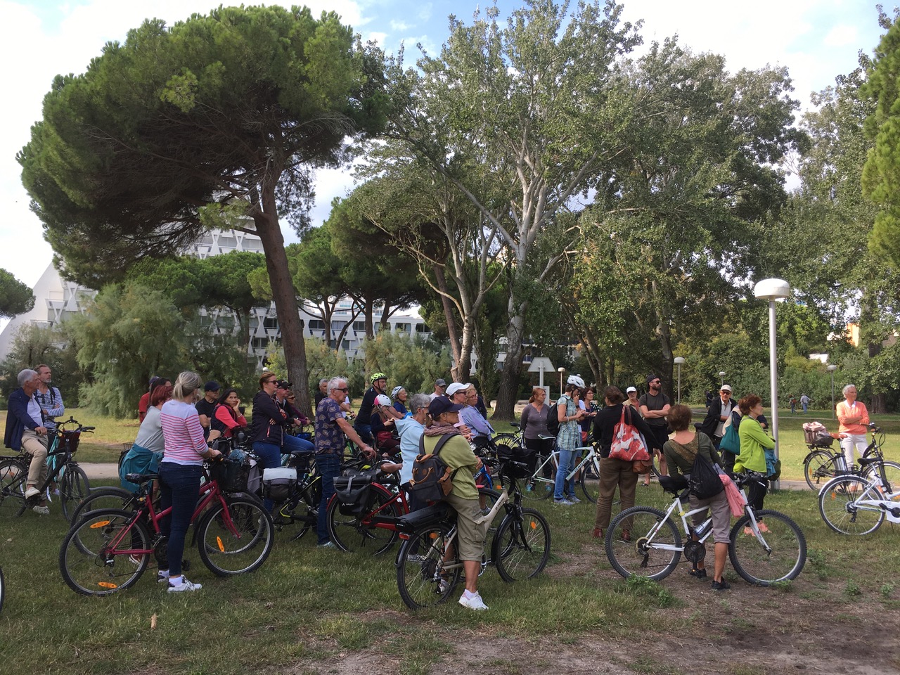 Afin de proposer une autre forme de découverte de l’histoire de La Grande-Motte, une balade à vélo architecturale, paysagère et urbaine,”Le chemin des oiseaux” était également programmée le samedi par le CAUE. Au fil du parcours, les 38 participants ont pu bénéficier des commentaires de trois architectes de l’équipe, dotés de compétences de paysagiste et d’urbaniste. La balade a ainsi permis une découverte du parti d’aménagement de Jean Balladur, architecte en chef de la station, en toute complicité avec Pierre Pillet, paysagiste, et de mieux comprendre le contexte historique et social, les œuvres artistiques disséminées sur l’espace public, le recours à la symbolique…