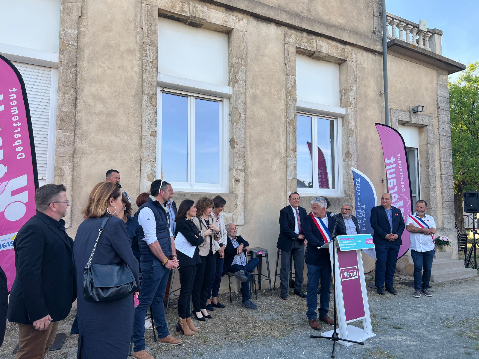 Cette initiative est soutenue par les collectivités – Pays Haut-Languedoc-et-Vignobles, Communauté de communes Sud-Hérault et Conseil départemental de l’Hérault – qui accompagnent le projet en mettant en œuvre un programme de requalification des espaces publics. À la demande de celles-ci, un scénario global d’aménagement est élaboré par le CAUE 34, qui intègre les équipements créés dans le cadre du projet œnotouristique ainsi que les équipements communaux tels que mairie, église, salle communale et terrains de sport. Il est suivi de la mise au point d’un programme d’actions.
