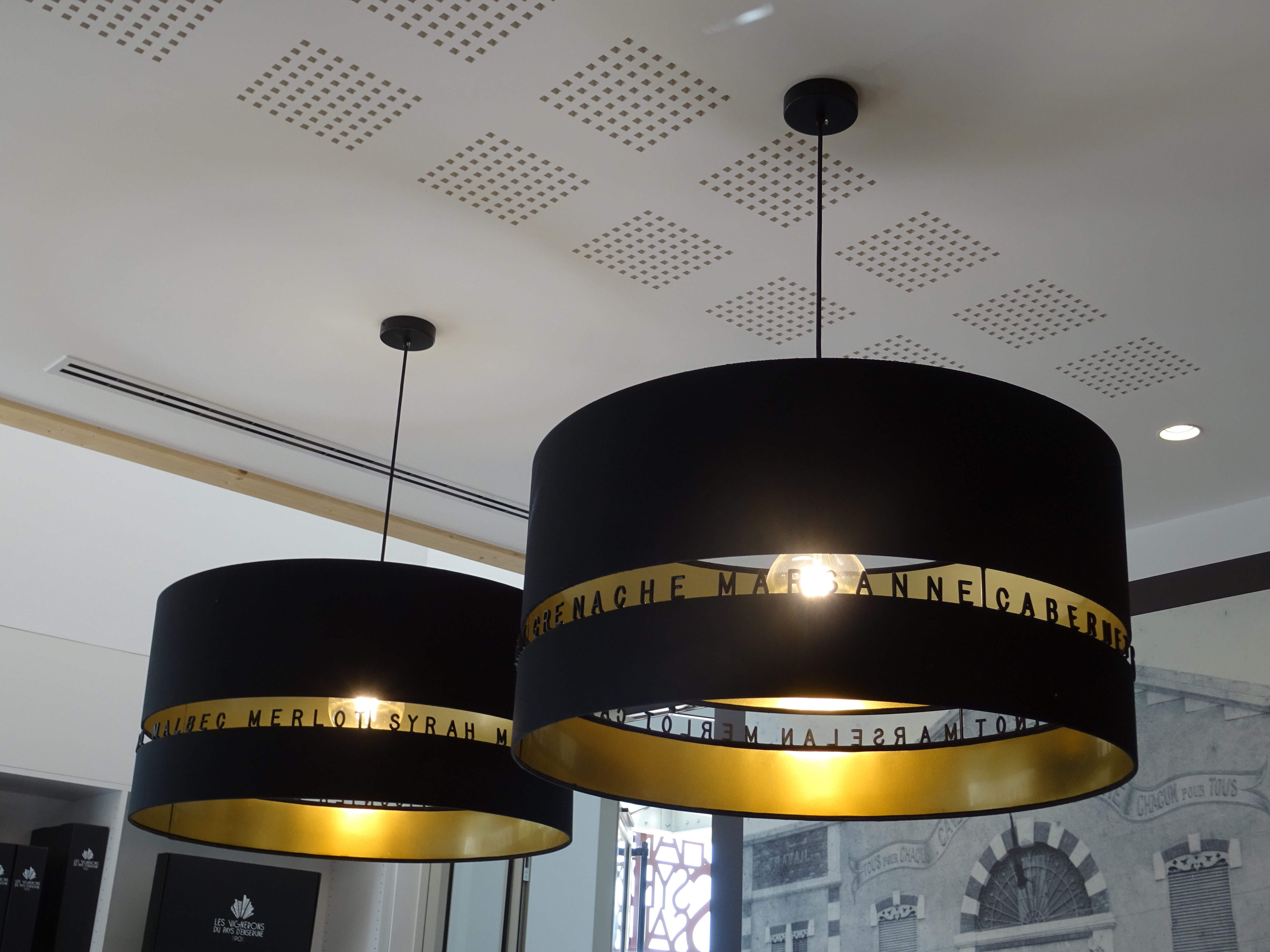 - Les luminaires de l’étage réalisés à partir de cerclages de barriques.