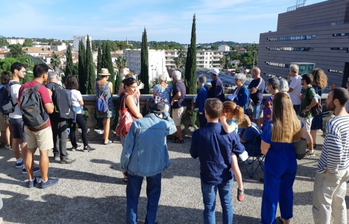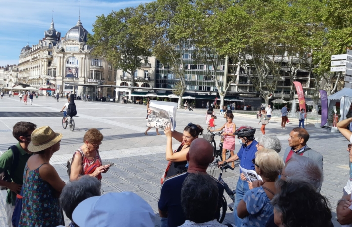 Une balade urbaine en partenariat avec la Maison de l’Architecture Occitanie Méditerranée, le samedi 18 septembre, à Montpellier, intitulée « De mémoire de ville ». Guidée par Odile BESÈME et Serena PALAZZI, architectes, la visite a permis à 27 participants de découvrir l’histoire de toute une partie de la ville, située entre le Corum et le parking Saint-Roch.