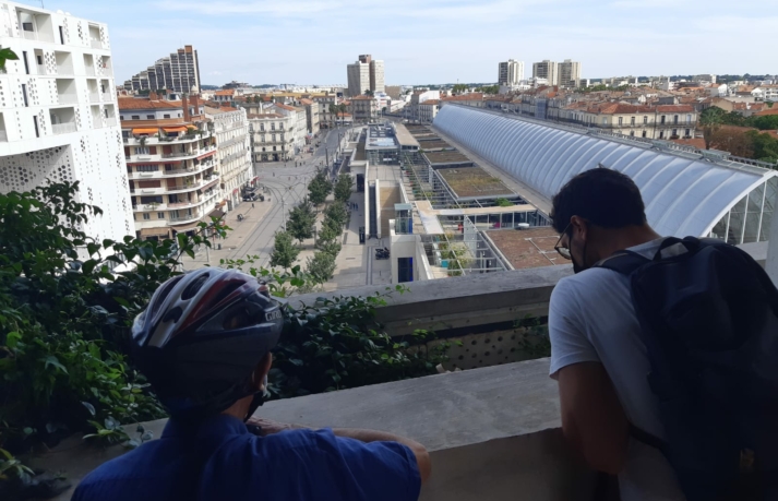 En fin de parcours, l’accès à la partie haute du parking Saint-Roch a offert la découverte de vues surplombantes sur le futur quartier “Nouveau Saint-Roch”, parfaite illustration des incessantes mutations de la ville, liées à l’évolution de la société.