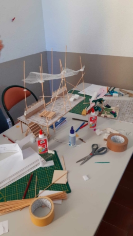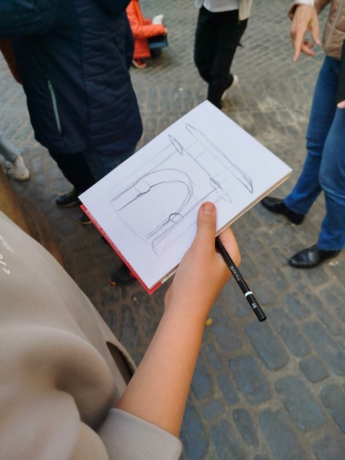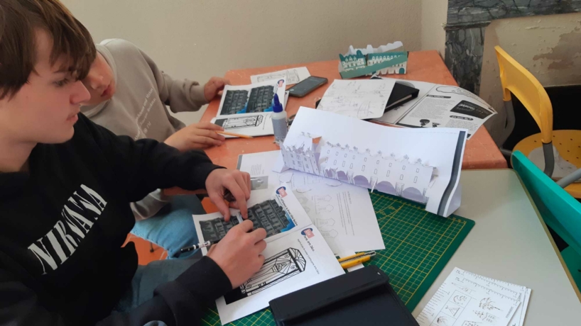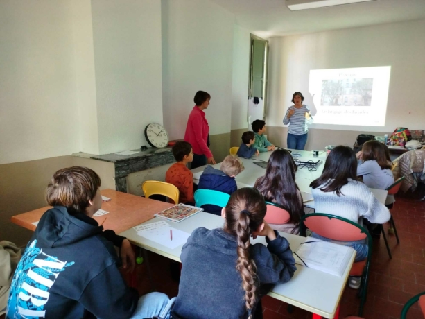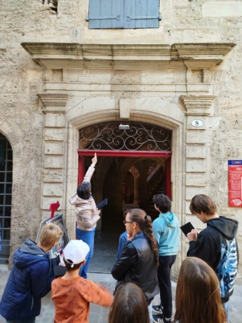 Au cours de la 1re journée, les 9 participants, âgés de 9 à 15 ans, ont été initiés à l’histoire de l’architecture par le biais d’un diaporama sur les différents styles architecturaux rencontrés à Pézenas, ce qui leur a permis de se familiariser au langage des façades et à leurs chuchotements d’histoire(s). Les participants ont pu comprendre les différentes façons de construire un arc (en plein cintre, en ogive, en anse-de-panier, grâce à la manipulation de maquettes en bois, aimablement mises à disposition par l’Office de tourisme. Des pop-up en papier et maquettes d’édifice historique ont été réalisés. L’après-midi a été consacrée à une balade architecturale dans le centre historique, avec observation des façades, réalisation de croquis et travail sur un livret pédagogique réalisé pour l’occasion et remis à chaque participant.