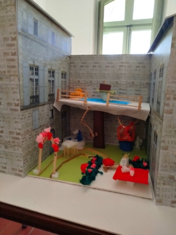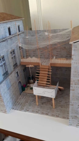 Le lendemain, les stagiaires ont conçu des projets en réponse au programme qui leur avait été donné : suite à un remembrement, mettre en relation deux bâtiments, par l’intermédiaire de l’aménagement d’une cour, d’un escalier ou de tout autre moyen. Les projets ont fait l’objet de maquettes, qui ont été présentées aux parents à la fin de l’atelier.