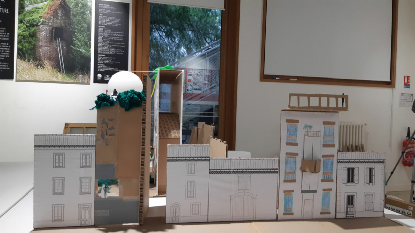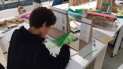 Les deux derniers ateliers, les 11 et 18 octobre, ont été consacrés à une initiation à la conception de bâtiments et d’aménagement d’espaces publics. Les participants ont été invités à imaginer des bâtiments venant s’inscrire dans des “dents creuses”, en milieu urbain ou à concevoir des aménagements d’espaces publics de leur choix (rue, place, parc…). Ces projets ont été concrétisés sous forme de maquettes. Les réalisations témoignent de la liberté avec laquelle les participants se sont appropriés les sujets d’étude.
