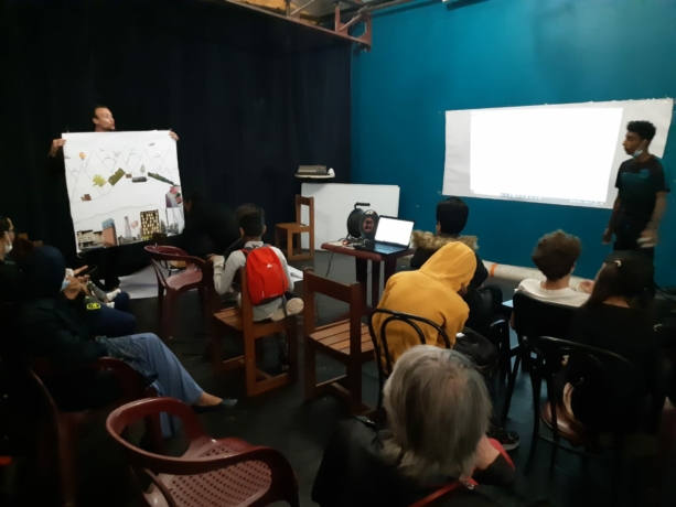 En complément de leur projet de réalisation de vidéos, les jeunes, provenant d’établissements scolaires de Celleneuve et de la Mosson, ont pu assister à un exposé sur la ville de demain et ses enjeux (habitat, mobilité, autonomie énergétique et alimentaire, biodiversité…), présenté par Anne-Marie LLANTA, architecte au CAUE 34.