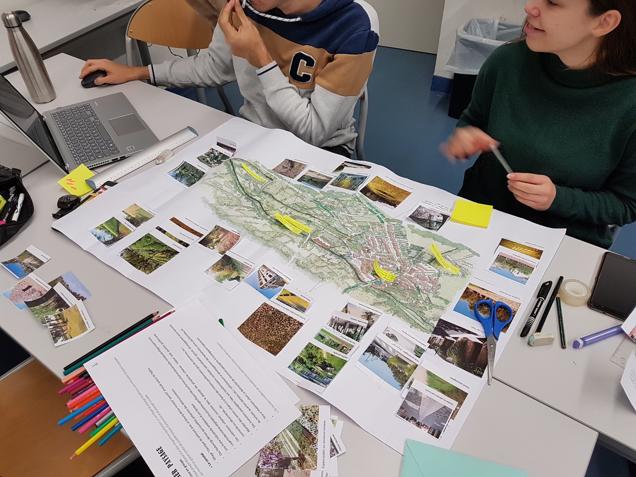 À travers l’élaboration d’une stratégie d’abord et la mise en place d’une ébauche de projet d’aménagement ensuite, les élève ont fait face à une mise en situation pratique par groupes sur un territoire donné.