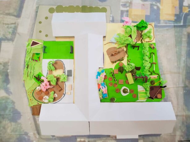 Chaque groupe a ensuite présenté en fin de journée sa maquette à l’autre, expliquant ses choix de représentation. Cet atelier a permis aux élèves de mieux comprendre les différentes manières d’aménager la cour et de tester ces hypothèses d’aménagement.