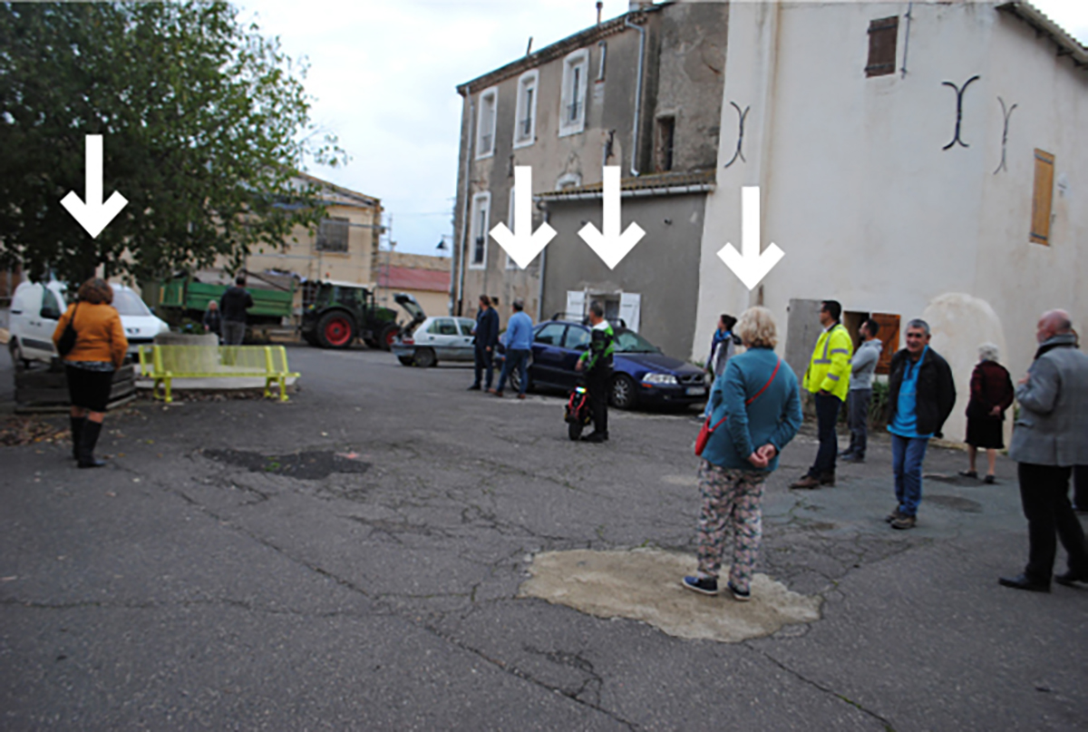 Le 8 novembre 2024, les habitants ont été invités à déambuler sur les places de l’Église et de la Fontaine. Ils ont exprimé leurs perceptions de ces espaces puis leurs envies et projections dans le cadre du projet. Un test de marche à pied a également été effectué afin d’évaluer le possible déplacement du stationnement des voitures sur un terrain communal à proximité. Un Montélois dira à cette occasion : “Ok pour se garer plus loin s’il y a des aménagements sympas pour marcher jusqu’à la voiture“.