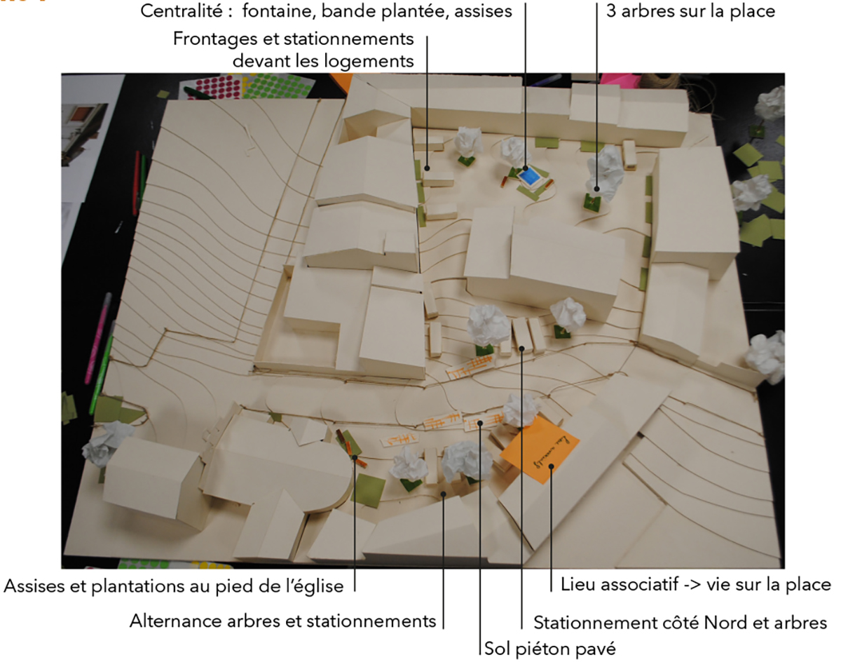 C’est ensuite autour d’une maquette que les habitants ont pu s’exprimer. À l’aide d’éléments préfabriqués – arbres, plantations, voitures… – ils ont testé eux-mêmes plusieurs scénarios d’aménagement de ces places. Trois scénarios ont ainsi émergé, avec pour points communs le partage des usages et l’amélioration du confort de ces deux espaces. À partir de cette matière, les paysagistes travaillent maintenant à l’élaboration de l’avant-projet. À suivre…