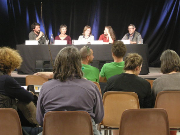 Parmi les questions abordées lors de cette table ronde (rectangulaire dans les faits) : L’arbre a-t-il sa place dans la ville ? Quelle relation a-t-on aux arbres ? Quels choix faisons-nous pour rendre la ville “belle”, choisit-on de la végétaliser ou pas ? Problème des continuités hydriques : quel lien entre les “trames vertes et bleues” et les “trames brunes” (biodiversité du sol) ? Quels sont les contraintes de l’installation d’arbres en ville (par rapport aux installations existantes : égout, fibre optique, lignes hautes tensions, chaussées…) ? Etc.