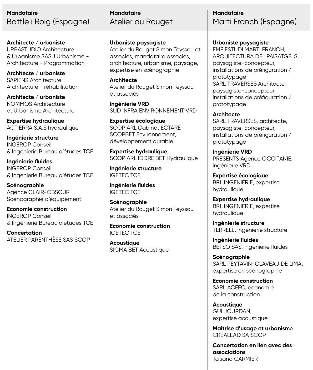 Les 3 équipes retenues pour le site de Lodève