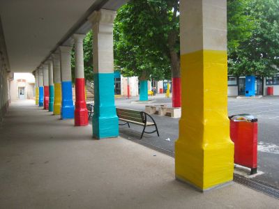 Dans un deuxième temps, l’artiste envisage avec la classe l’orientation et la nature du projet de transformation éphémère d’un espace du collège. Il aborde, en fonction des idées proposées, les problématiques de faisabilité techniques et pratiques, et coordonne la réalisation et la mise en œuvre du projet retenu.