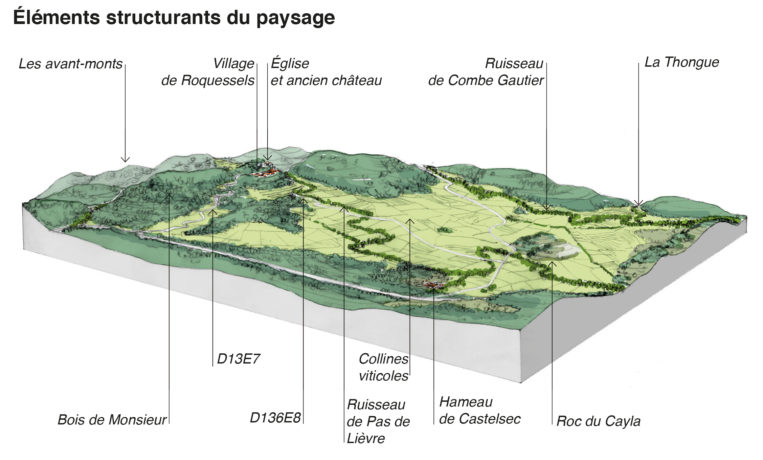 Le village de Roquessels, peuplé d’une centaine d’habitants, est surplombé par les vestiges d’un château et l’église romane de Notre-Dame. Ce site castral d’intérêt patrimonial s’inscrit dans un territoire à fort potentiel touristique labellisé Pays d’Art et d’Histoire. Depuis ce lieu immergé dans la forêt méditerranéenne, des points de vue remarquables se dégagent sur la vallée jusqu’à la mer.