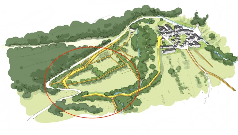 Les orientations d’aménagement découlent également des enjeux paysagers identifiés : respect de la trame paysagère du site, préservation du principe d’une prairie perméable pour l’espace de stationnement, préservation du point de vue sur le hameau.