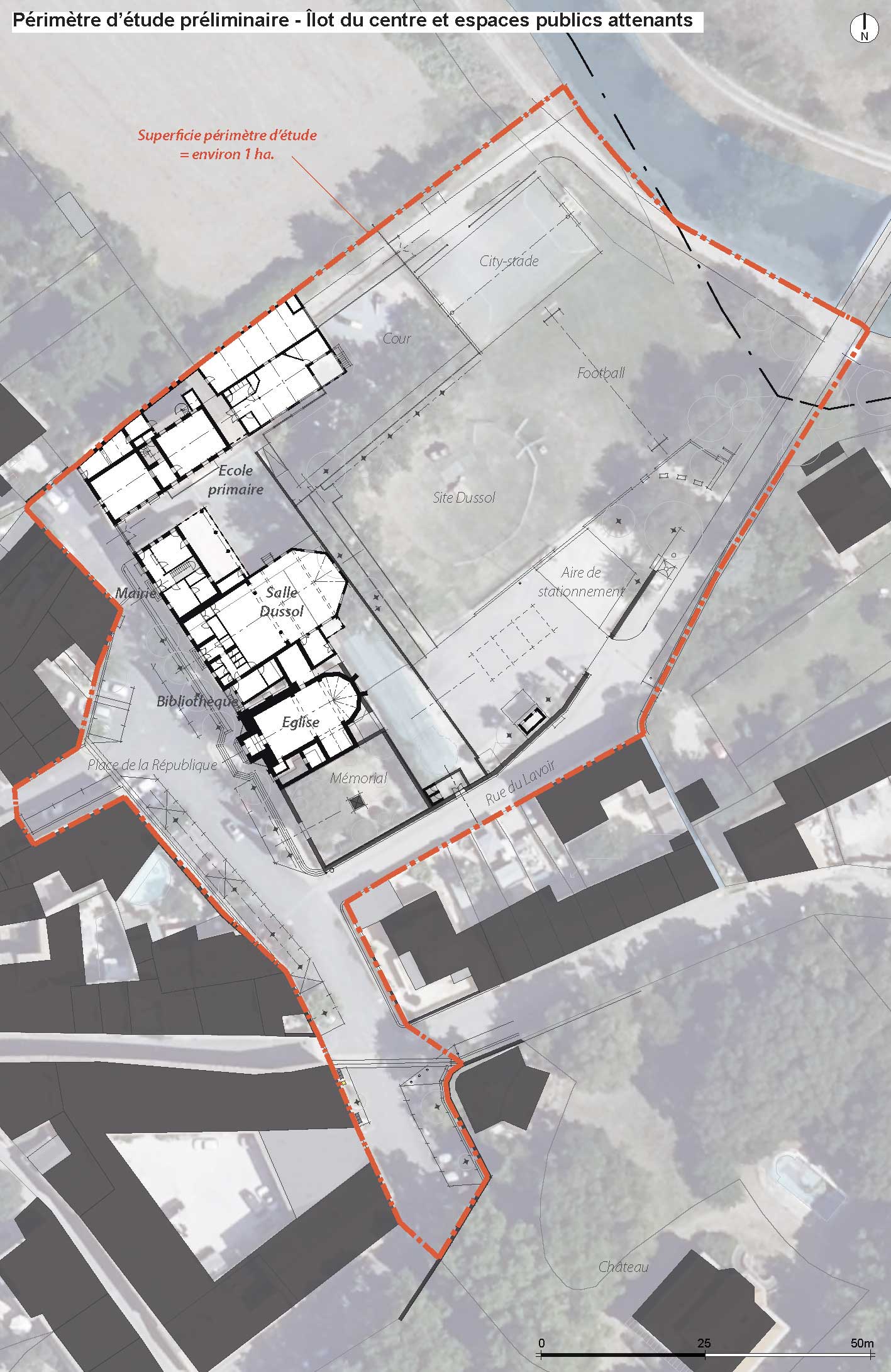La réflexion doit également prendre en compte la qualité des espaces publics adjacents à l’îlot du centre :