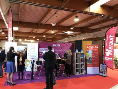 Accueilli sur le stand du Conseil Départemental de l’Hérault, le CAUE 34 côtoyait Hérault Ingénierie et Hérault Numérique. Julie GARCIN SAUDO, présidente du CAUE 34, a accompagné le président du Conseil Départemental, Kléber Mesquida, dans sa visite du salon. L’équipe du CAUE 34 représentée par Brigitte MAS, directrice, Sylvaine GLAIZOL, directrice-adjointe, Serena PALAZZI, architecte et paysagiste conseillère et Alain PEREZ, architecte et urbaniste conseiller, a pu échanger, tout au long de la journée, avec les professionnels et les élus présents, et diffuser ses divers documents et plaquettes.