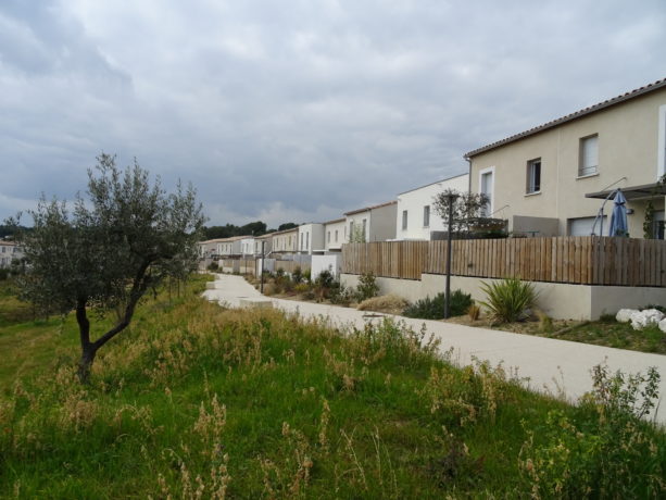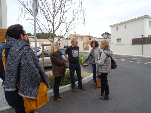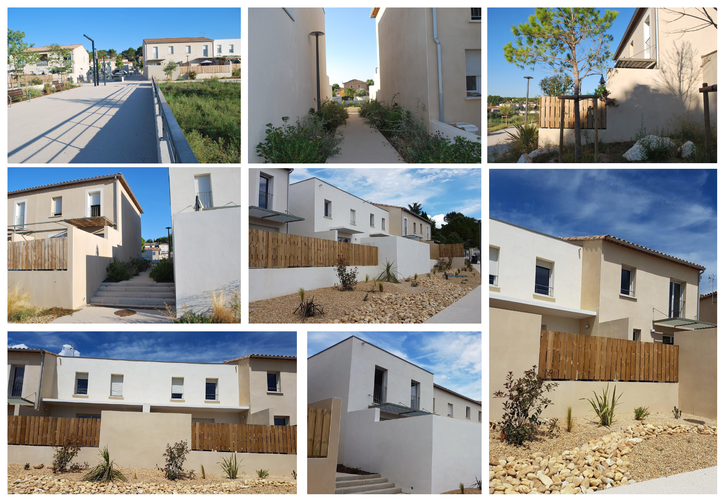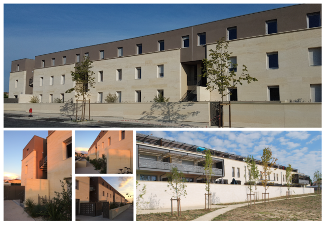 Troisième et dernière escale : direction le Domaine des Peyrouses, à Saint-Géniès-des-Mourgues ! Ici, la résidence – réalisée entre février 2016 et mai 2017 – par l’agence EYMARD-DESPIOCH comporte 26 logements locatifs sociaux : 16 maisons groupées et 10 logements.