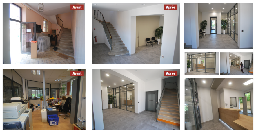 En septembre 2017, les travaux commencent. “Nous avons vidé entièrement le bâtiment !” se souviennent Béatrice DESPIOCH et Christel EYMARD. Plusieurs points ont guidé leur conception : l’accueil du public, la confidentialité des élus vis-à-vis du public et le traitement des circulations, lieux de rencontre et d’échanges.