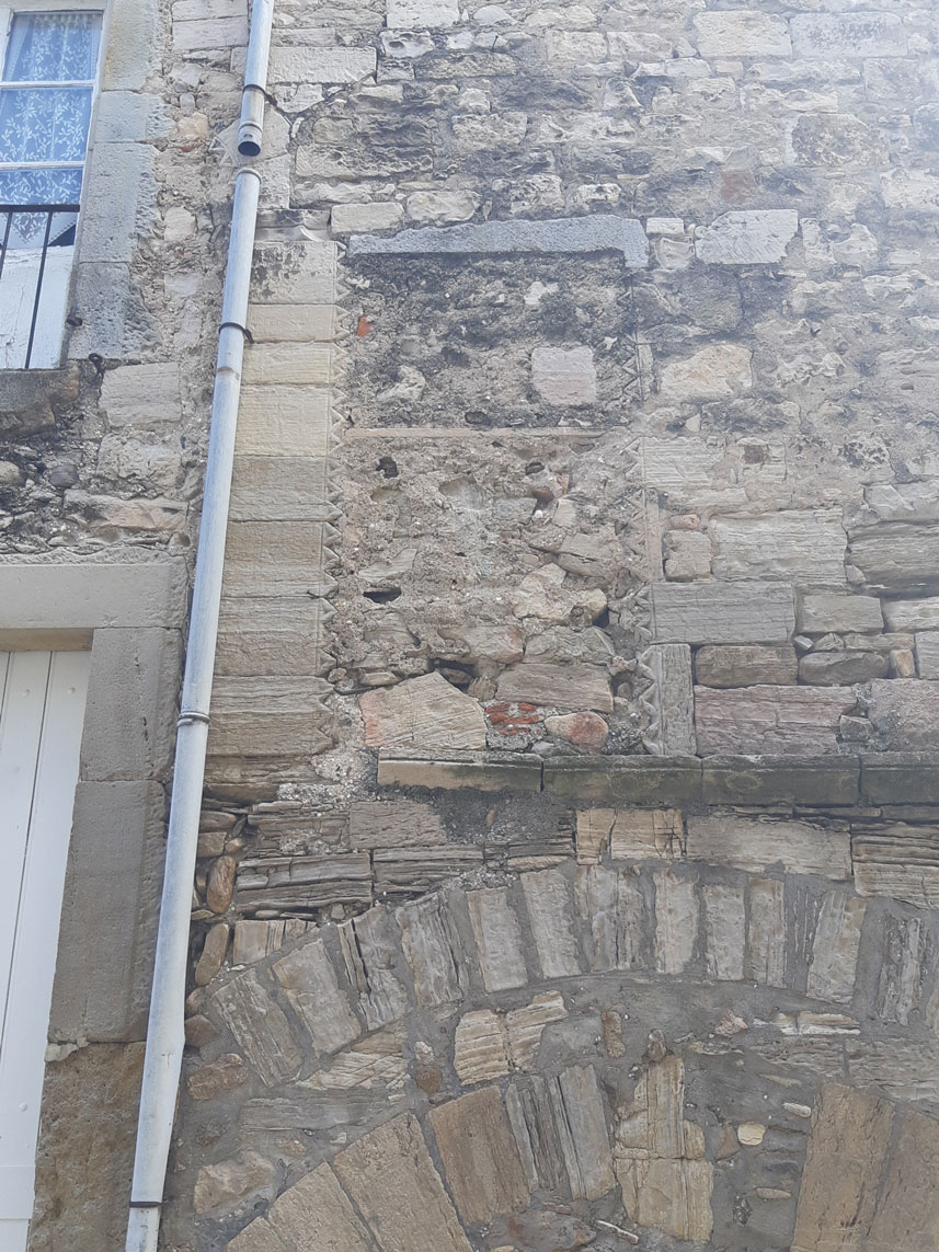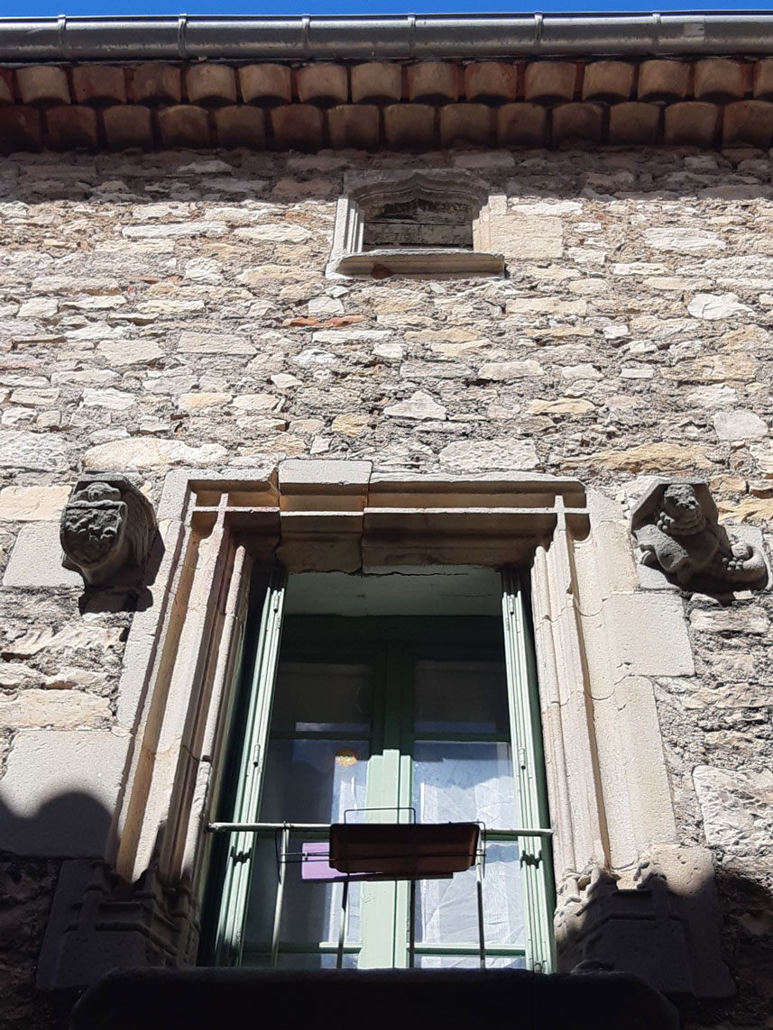 Génoises, avant-toits, corniches, ouvertures, parements, enduits de façades, décor sculpté, menuiseries… Les façades ont été scrutées, pour comprendre leur évolution, liée à l’histoire locale. Des éléments médiévaux de réemploi (cordons moulurés, mascarons,…) ont été découverts sur la totalité du parcours. Certains d’entre eux proviennent du pillage, au XVIe s., de l’abbaye Saint-Martin et Saint-Majan.