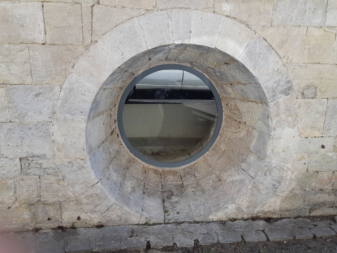 Place de l’Abbaye, les vestiges de la Tour Mirande ont permis d’imaginer combien cette tour devait être imposante à l’origine, compte tenu de l’enfouissement actuel d’un niveau complet, du fait du rehaussement progressif du sol, en lien avec les crues, dont témoigne également un ancien oculus situé à présent au ras de la chaussée – alors qu’il devait être initialement positionné à 4 m. de haut.