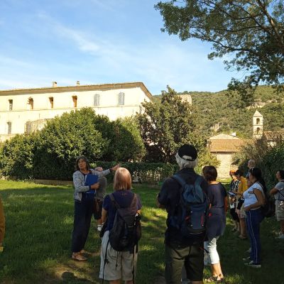 Une fois contournée l’actuelle église paroissiale, les participants ont été invités à rejoindre l’église Saint-Grégoire, devenue musée archéologique, où ils ont pu découvrir des vestiges archéologiques et médiévaux, une passionnante exposition sur l’histoire du village et de ses monuments, ainsi qu’une maquette de l’abbaye.