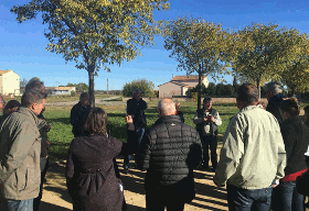 En première phase de diagnostic, le 19 novembre, afin d’appréhender les sites du futur projet , l’agence Amphoux propose à la commission communale d’aménagement d’arpenter les espaces publics du village. Les participants sont invités à répondre à un questionnaire aux différents points d’étapes prévus dans le parcours. Et le temps d’une matinée, éclairés par les commentaires des professionnels du paysage et de l’urbanisme, ils sont amenés à analyser leur cadre de vie.
