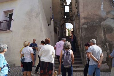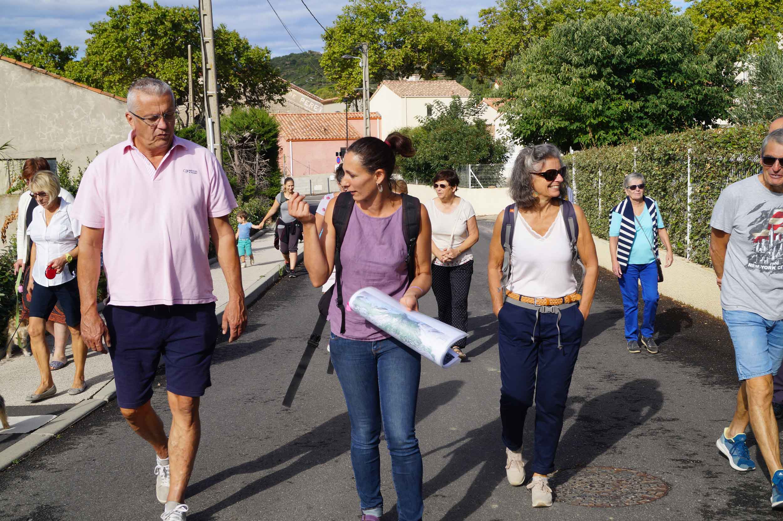 Au-delà de l’aspect patrimonial, cette promenade était l’occasion de discuter des formes urbaines (îlots denses, couronnes vivrières, etc.), de la relation du bourg au paysage (eau, relief, activités agricoles, etc.), mais aussi de parler des pouvoirs qui « dessinent » le village (dépendance du Castrum de Cabrières, l’Abbaye de Lodève, la commune).