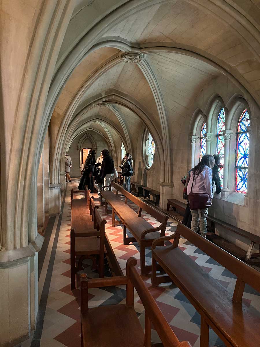 Les lycéennes ont ensuite eu le privilège de visiter la chapelle, dont la hauteur intérieure est de 29 mètres (l’équivalent de 10 étages !) et d’admirer son décor intérieur (sculptures, peintures, vitraux de Félix Gaudin (maître verrier clermontois), grilles de clôture en ferronnerie et bancs en bois réalisés par les élèves…). Pour l’abbé Prévost, la beauté constituait une valeur à portée éducative et la fréquentation de cet établissement a permis l’éclosion de véritables vocations artistiques.
