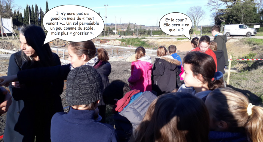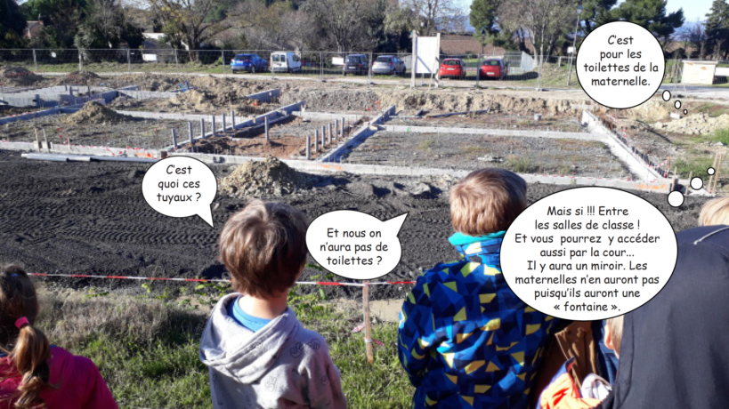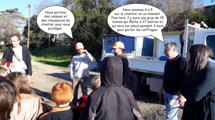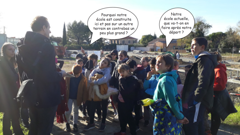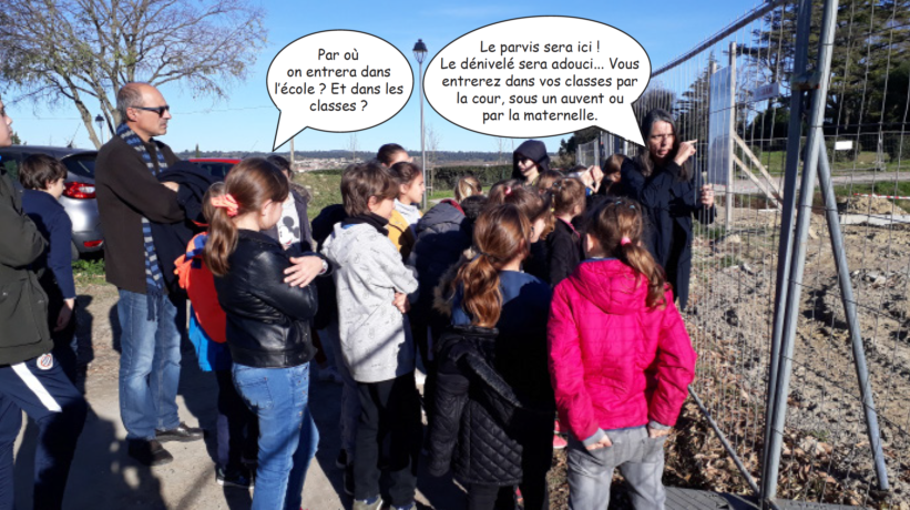 Le 11 décembre 2018, les enfants et leur professeur Bernard LEFEVRE, futurs usagers de la nouvelle école, ont visité en avant-première le chantier.