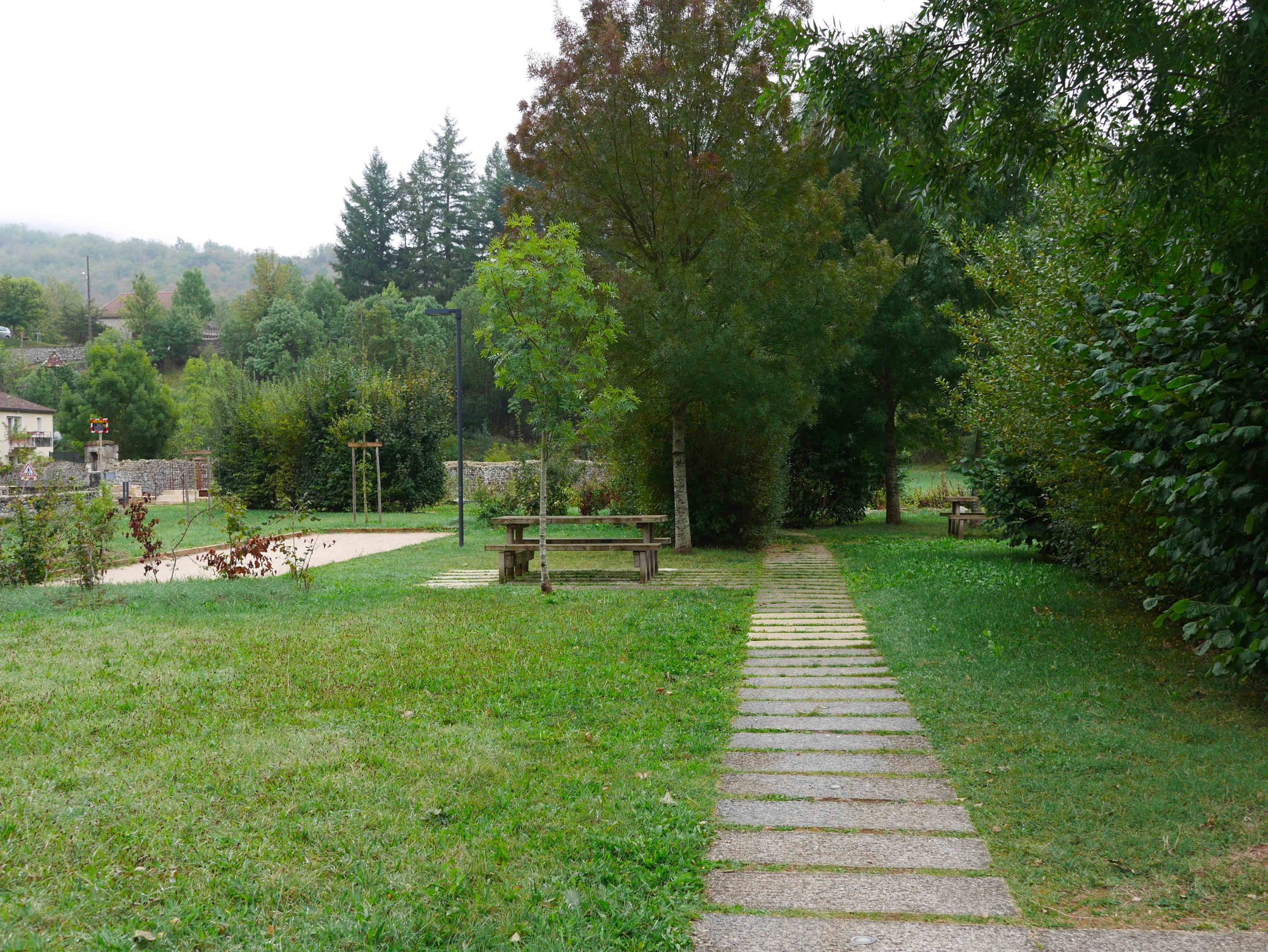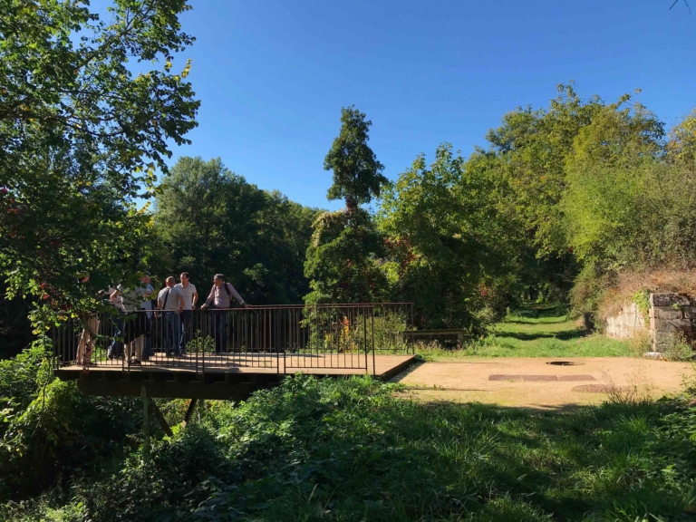 Suite des visites commentées par Peter PAULIN, 1er adjoint au maire à CABRERETS, place du Foiral, traversée et aire de pique nique en bord de rivière et gestion du cours d’eau (Emmanuel PRIEUR, paysagiste concepteur et atelier RK, architecte).