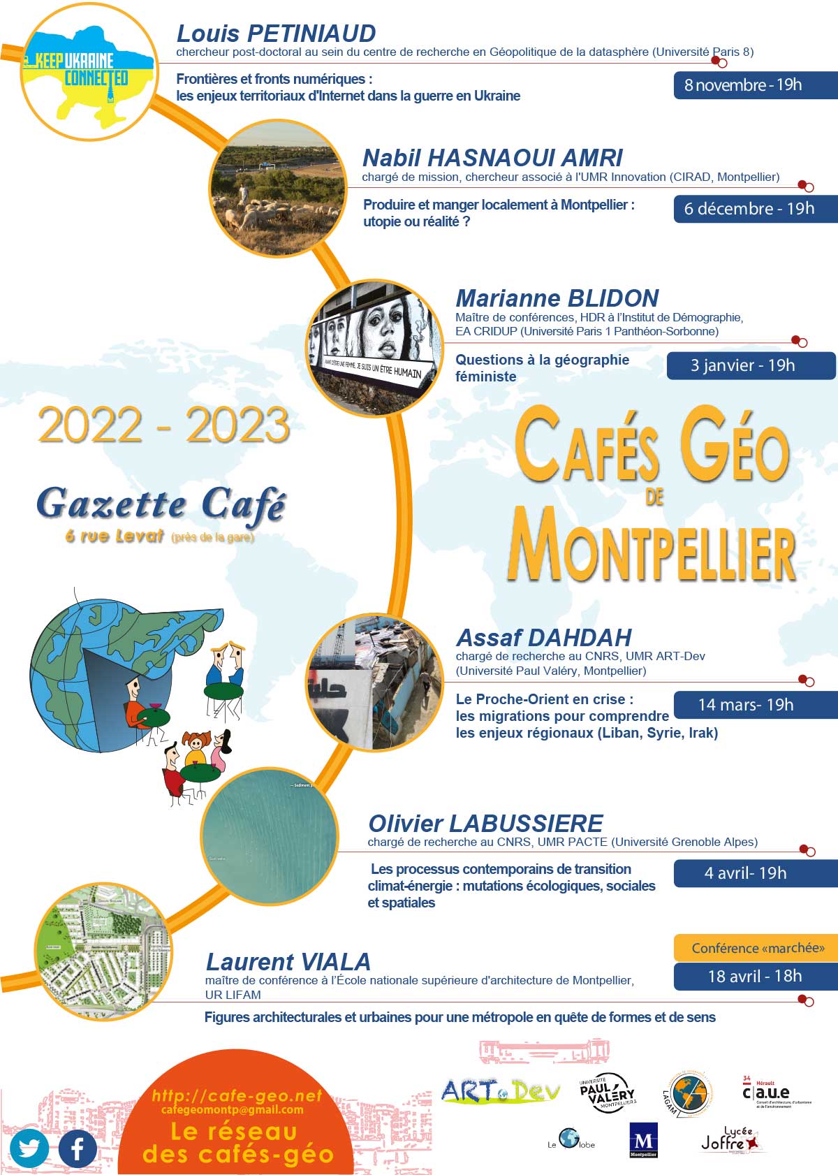 Toute l’actualité sur la page facebook des Cafés géographiques de Montpellier.
