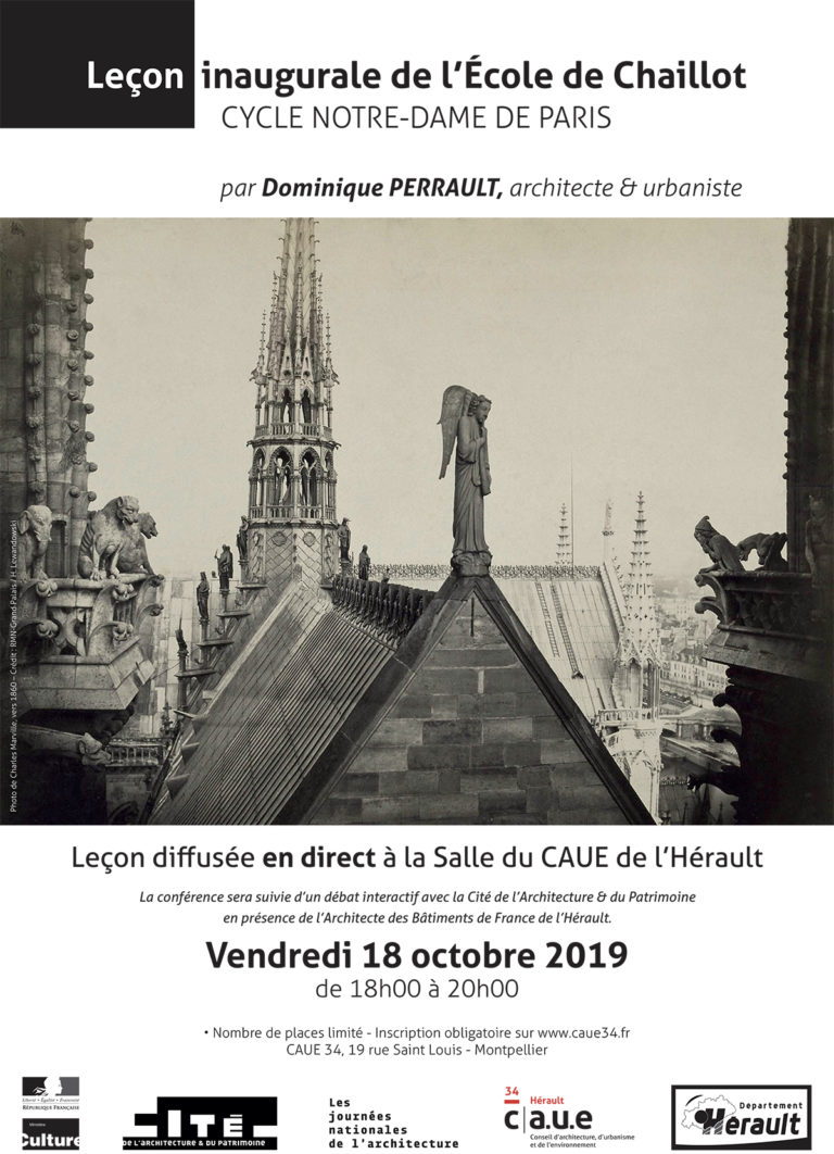 À l’occasion des Journées Nationales de l’Architecture 2019, l’École de Chaillot (Paris) inaugure son cycle de conférences sur Notre-Dame de Paris le :