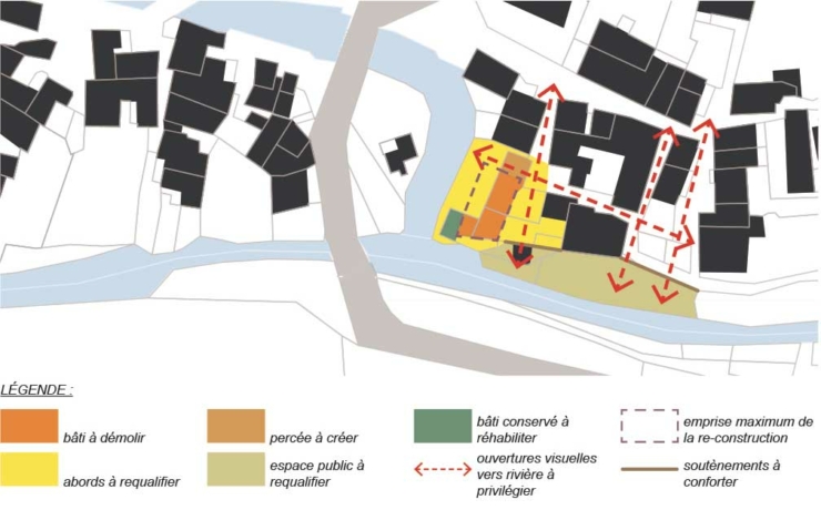 La commune s’engage maintenant dans la phase pré-opérationnelle. Elle recherche une équipe de concepteurs qui se verra confier une mission de maîtrise d’œuvre pour la restructuration de l’îlot et l’aménagement de ses abords.